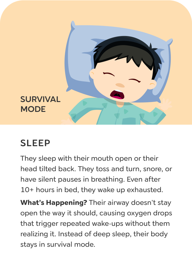 Behavior challenges that seem rooted in attention may actually reflect a structural issue that starts with the airway. Without deep, consistent sleep, the nervous system cannot regulate properly. What looks like ADHD may be the outward sign of a child whose body is struggling to rest and recover.