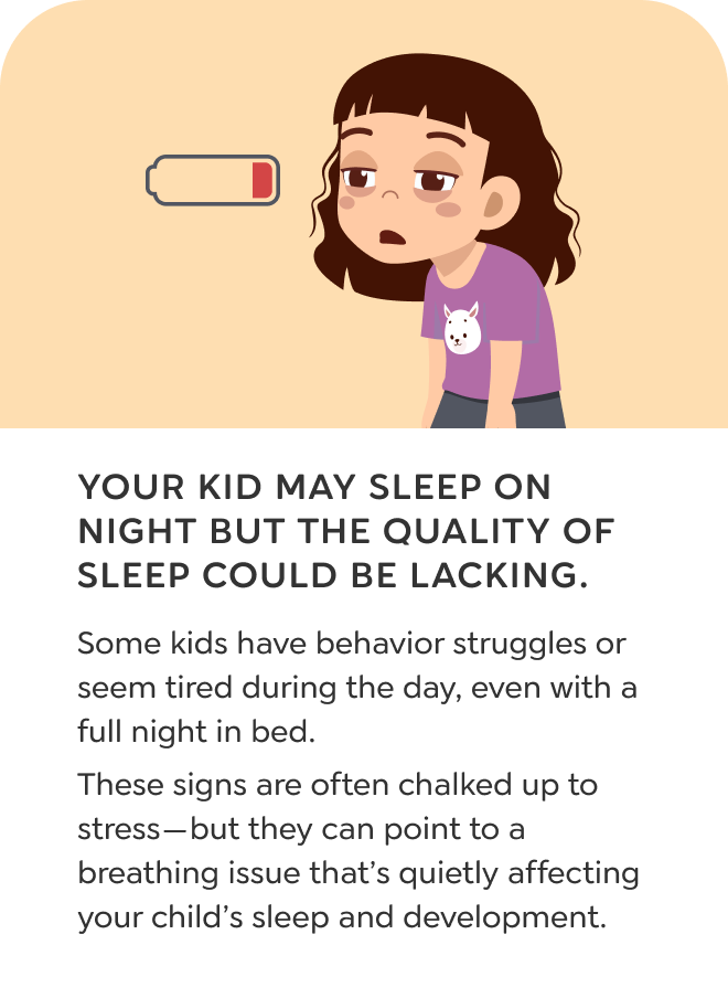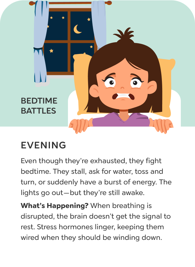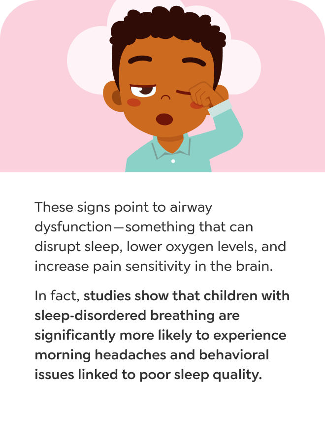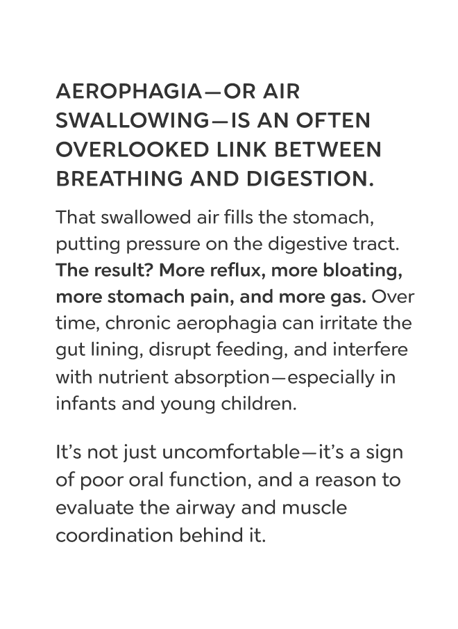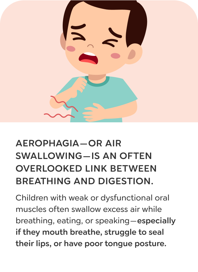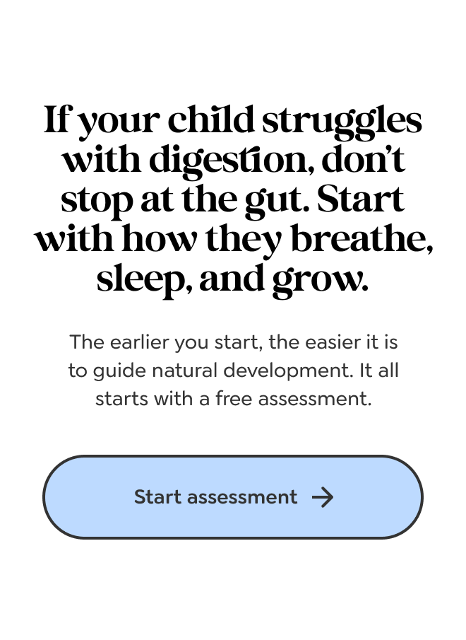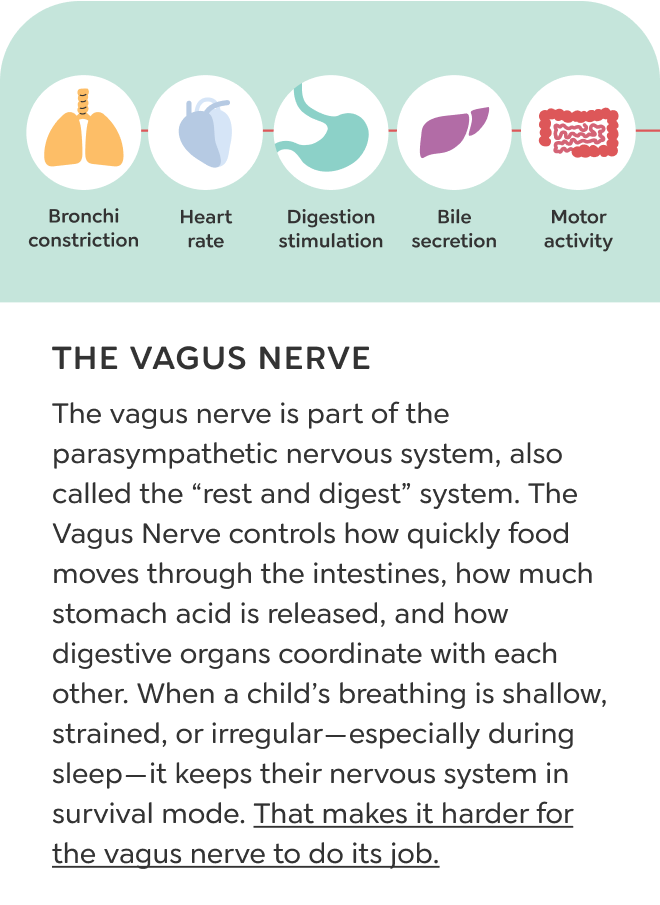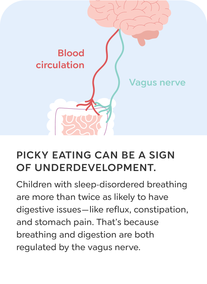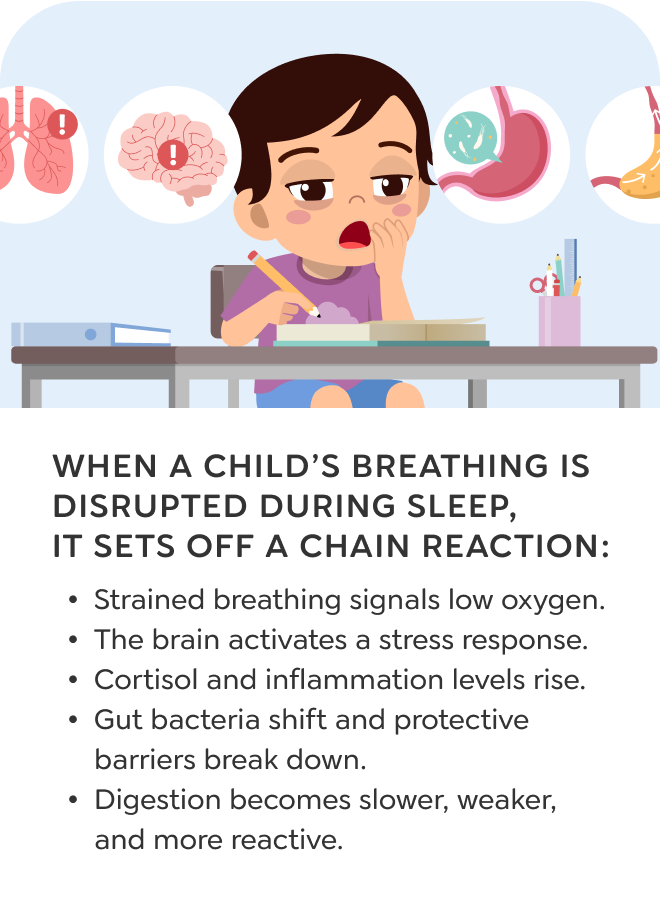 Your child wakes up queasy, gets gassy after meals, or avoids food. Swallowing extra air and missing out on restful sleep can throw digestion off balance. Poor airway function might be interfering with how the gut processes and recovers.
