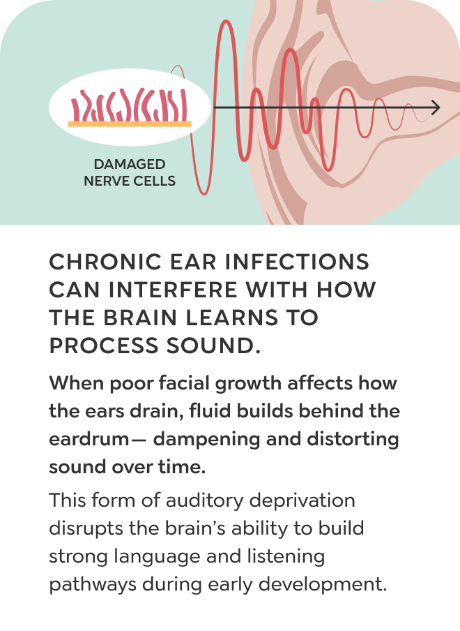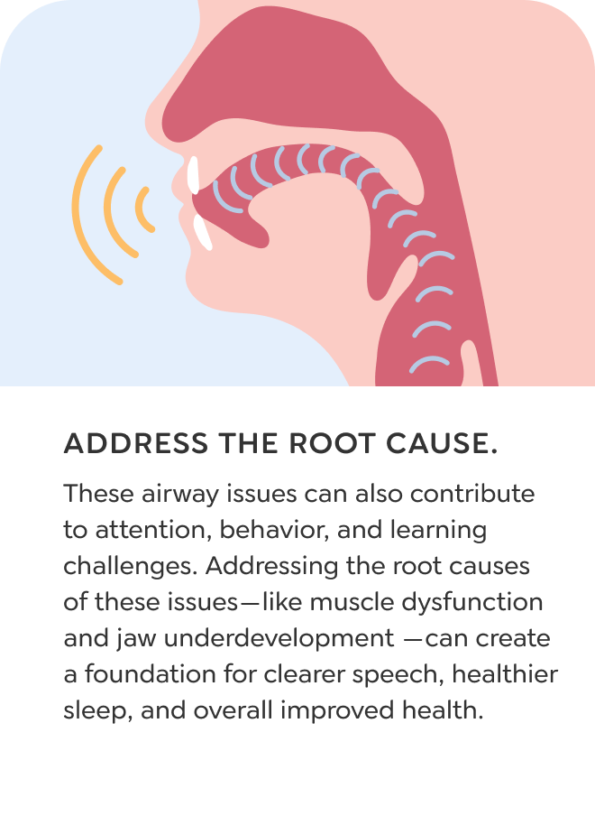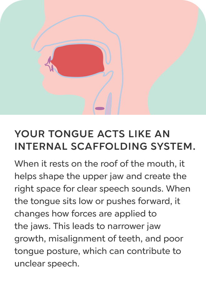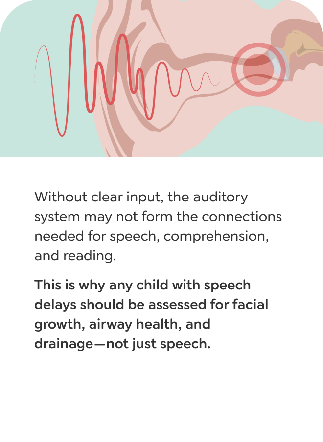 These physical limitations affect both how children produce sounds and how they hear them. While speech therapy can help, long-term progress often depends on whether the mouth, tongue, and airway are functioning the way they should.
