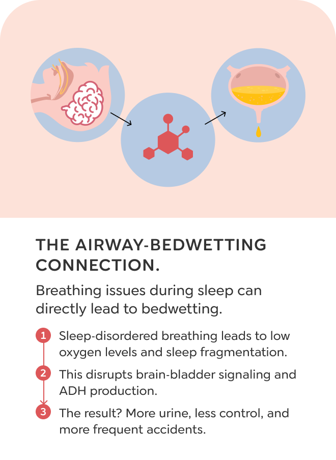Your child seems old enough to stay dry, and accidents no longer make sense. It’s not always about maturity. If breathing is strained at night, the nervous system can struggle to regulate bladder control during sleep.
