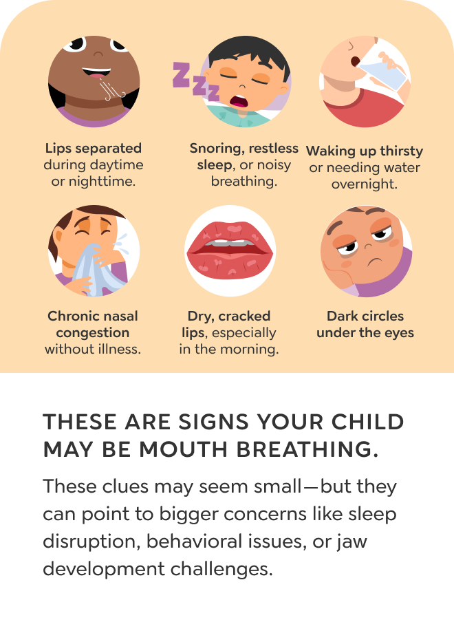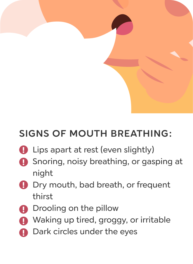 Your child rarely keeps their lips closed, especially during sleep. Mouth breathing often happens when the nose is blocked or the jaws are too small. Over time, this can affect how the face and airway develop.