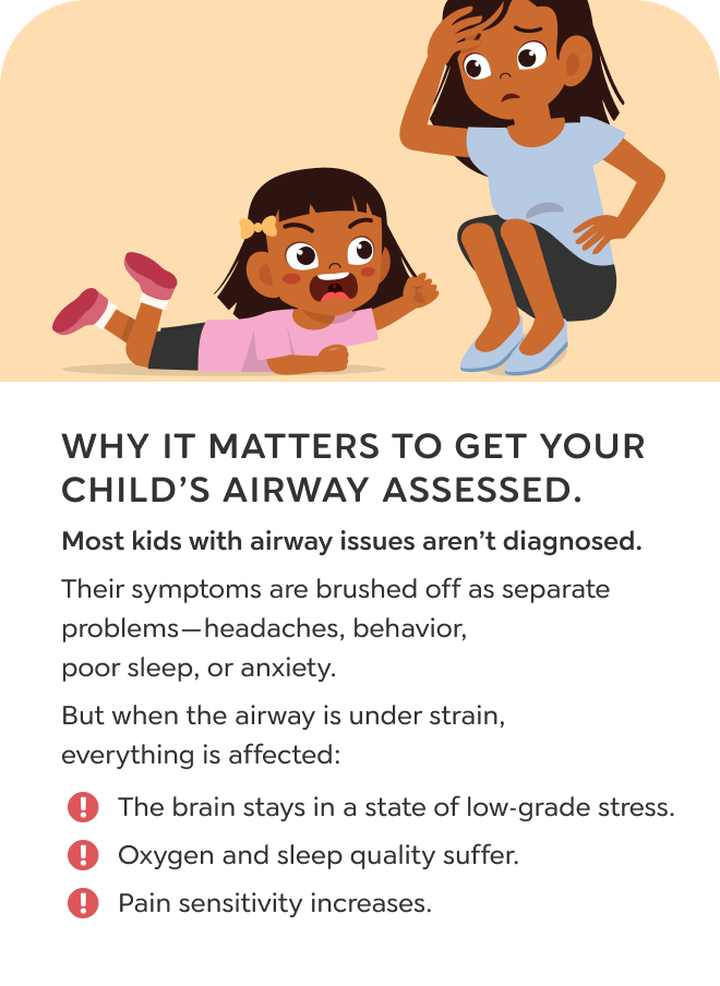 What’s often overlooked is how breathing and jaw development can quietly shape a child’s health, growth, and daily behavior. For many families, it’s the missing piece behind the symptoms no one has been able to explain. Once you see the connection, everything starts to make more sense.