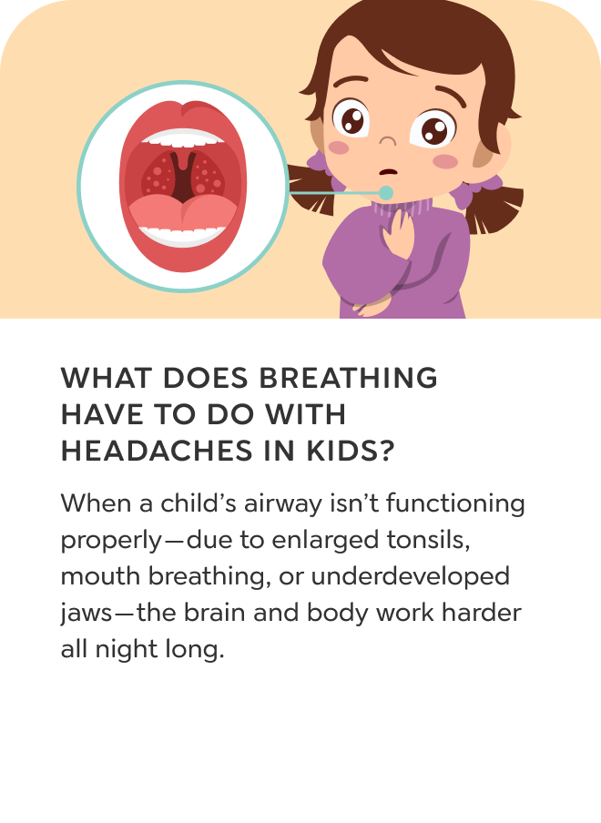 Headaches in children can have many causes, but when they appear alongside poor sleep, mouth breathing, or fatigue, it may point to airway dysfunction. A child with underdeveloped jaws often struggles to breathe well at night, which disrupts their sleep and reduces oxygen flow to the brain. That disruption affects how the brain regulates pain and recovers overnight.