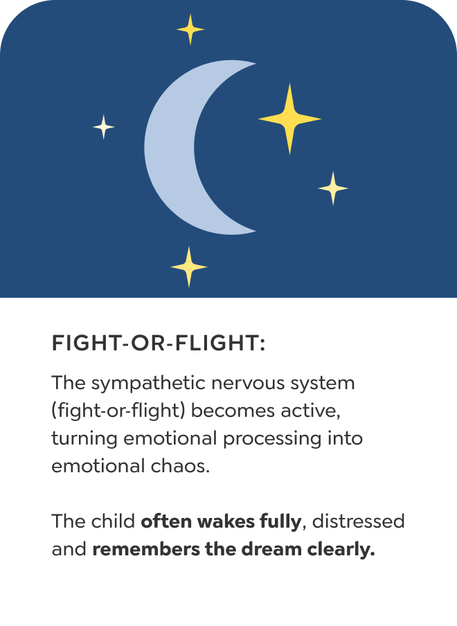 Instead of entering REM sleep, the child may partially awaken in a disoriented state, resulting in a night terror. This is not a behavioral issue—it is often a physiological response to broken sleep. Addressing the root cause of mouth breathing can help restore more stable sleep and reduce the frequency of night terrors.