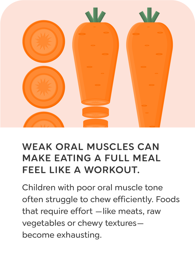 Many children who are labeled as picky eaters aren’t avoiding foods because they’re defiant. They’re avoiding foods that are physically hard to manage. When chewing feels difficult or the tongue doesn’t function well, a child will naturally prefer soft, bland options that require less effort. What seems like preference is often the result of oral muscles that didn’t develop the strength or coordination needed for harder textures.