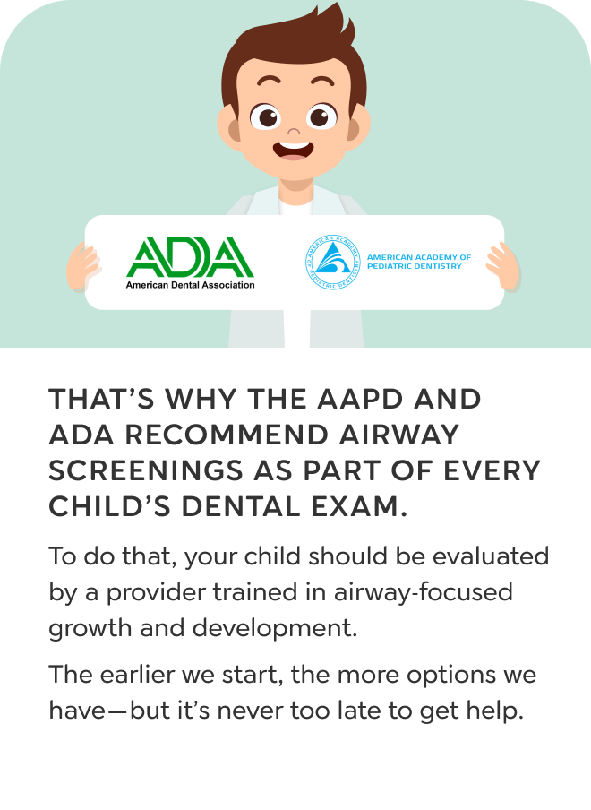 An evaluation by an airway-focused dentist ensures accurate assessment and targeted support for your child's breathing and developmental needs.