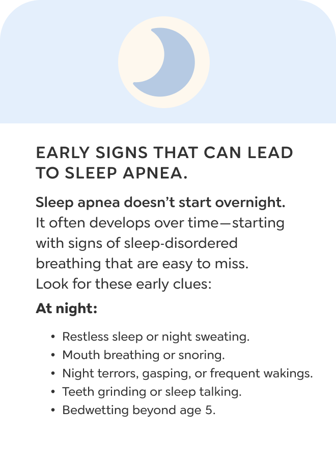 Your child cries or panics at night but doesn’t remember it by morning. Instead of cycling through sleep normally, they may be stuck in shallow stages. This often happens when breathing gets disrupted during deeper sleep.