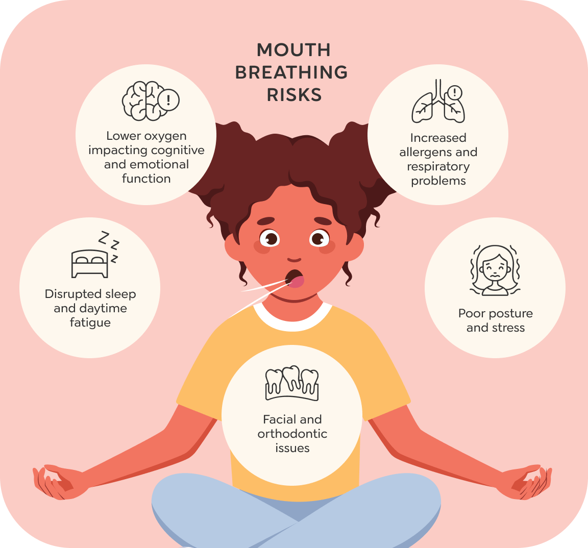 The impact depends on how often it happens. A child who mouth breathes occasionally may show mild symptoms. A child who mouth breathes during both the day and night often experiences more serious effects on sleep, growth, and development. To correct it, the underlying reason for nasal obstruction needs to be identified and addressed.
